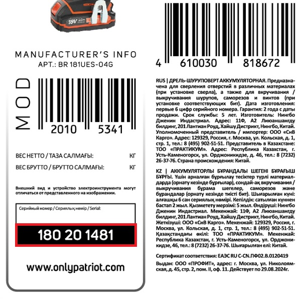 Серийный номер может быть указан в виде длинного кода под штрихкодом. Из этих чисел требуется только часть данных. Вам потребуется сформировать серийный номер для сайта следующим образом: