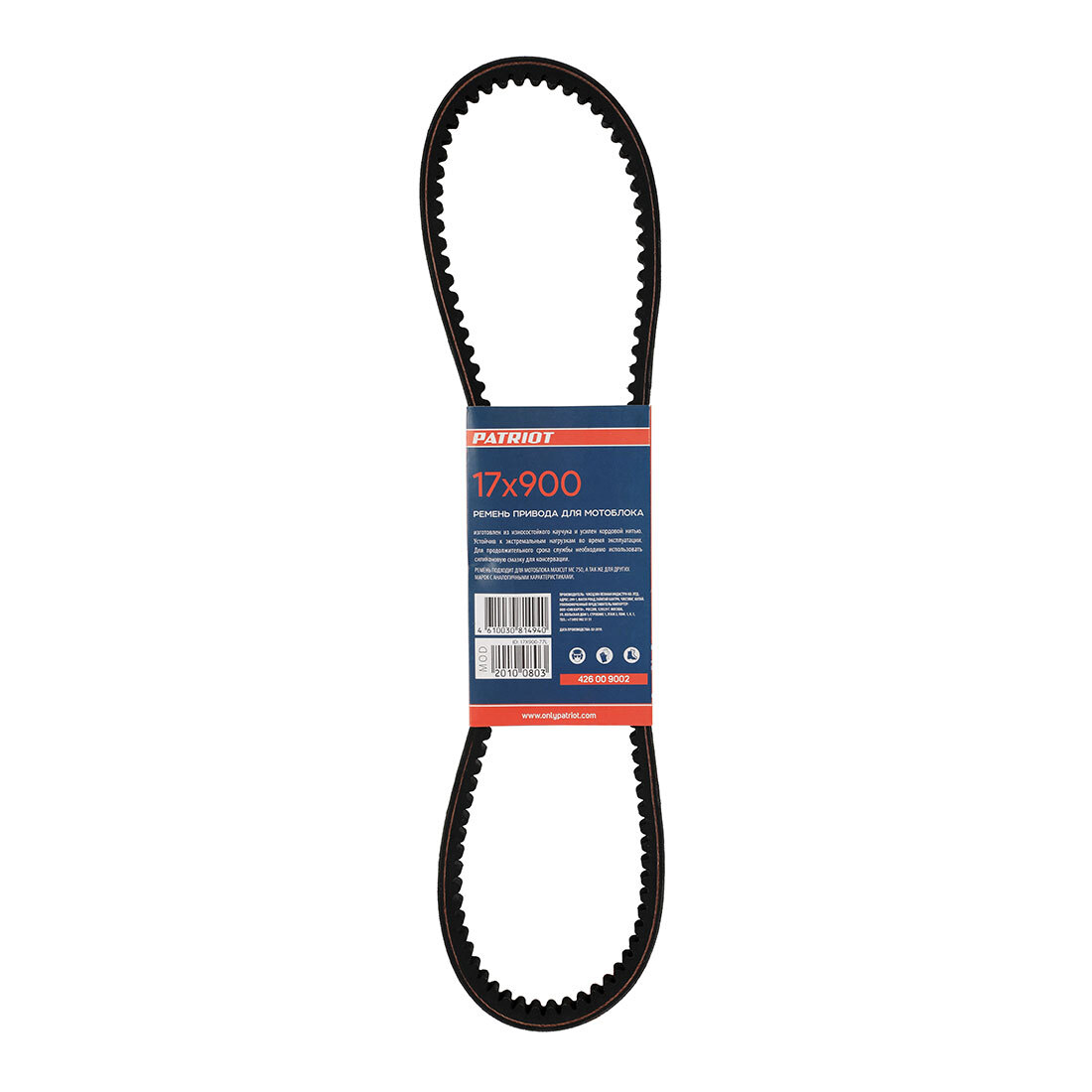 Ремень PATRIOT 17X900 мотоблока MaxCut MC750. Необходим для передачи крутящего момента с двигателя на ведомый вал, за счет чего мотоблок начинает движение. Ремень изготовлен из прочных материалов, имеет длительный период эксплуатации.