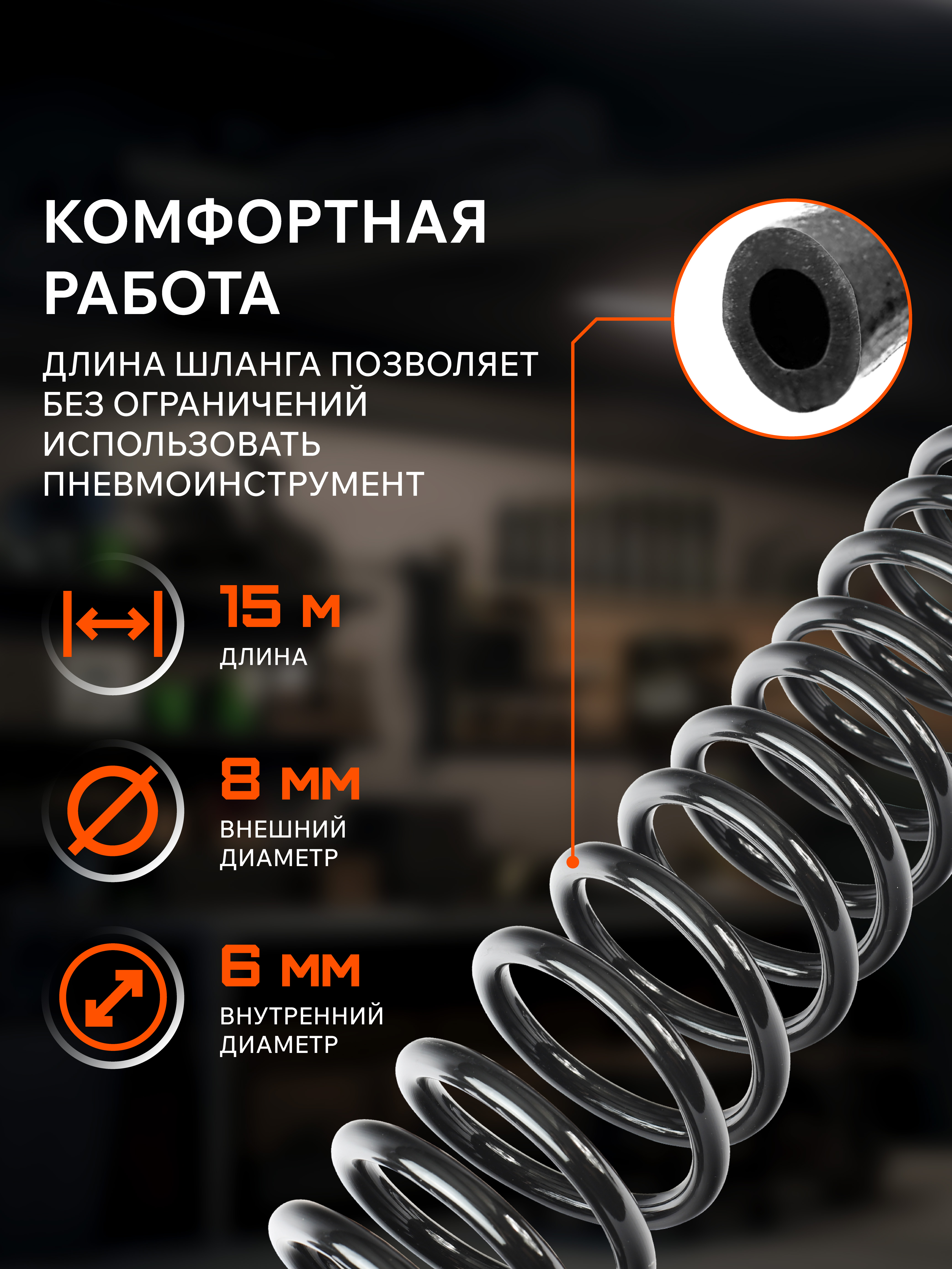Шланг пневматический спиральный PATRIOT PU 15 предназначен для подачи сжатого воздуха от компрессора к пневмоинструменту. Спиральная структура шланга обеспечивает удобство использования и исключает образование перегибов и деформации. Не теряет эластичность при низких температурах. Оснащен быстросъемными штуцерами, обеспечивающими легкое присоединение и надежное крепление. Длина – 15 м.