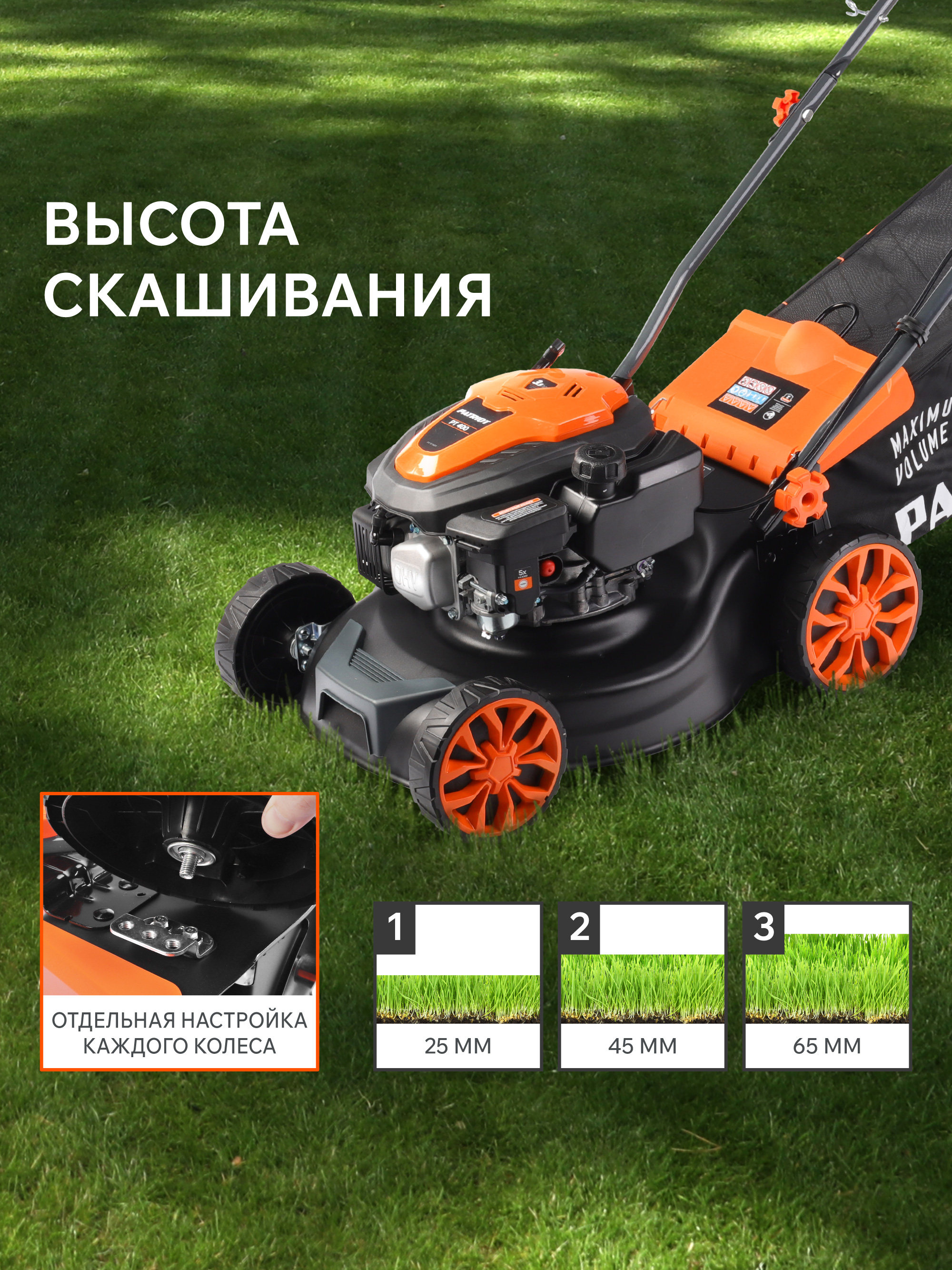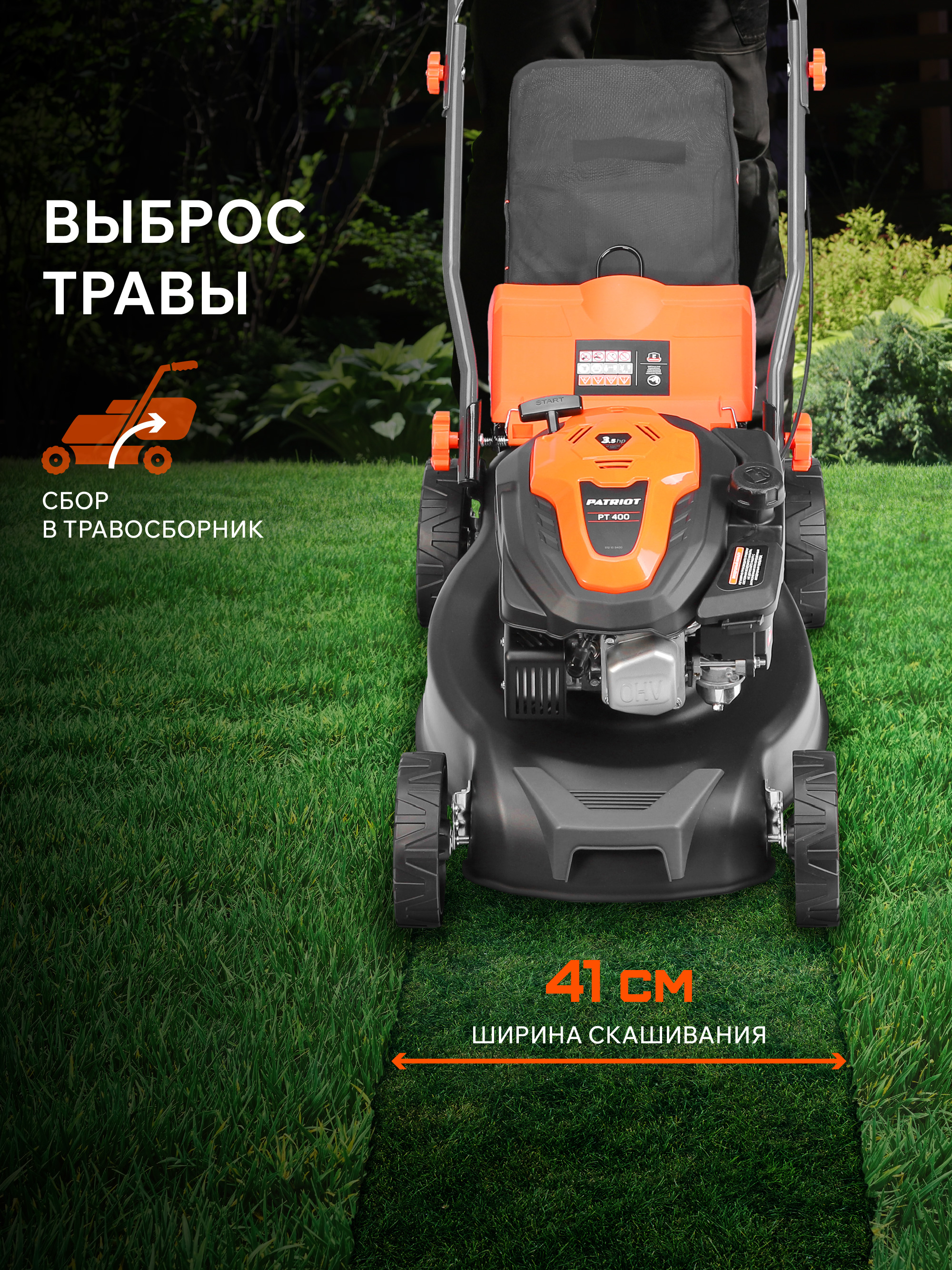 Мощная бензиновая газонокосилка РТ 400 с изменяемой высотой скашивания предназначена для срезания и сбора травы на ровной площади приусадебных участках. Газонокосилку отличает легкий запуск, высокая производительность и простота в обслуживании. Складная рукоятка, съёмный травосборник и компактный размер позволяют легко транспортировать и хранить газонокосилку.