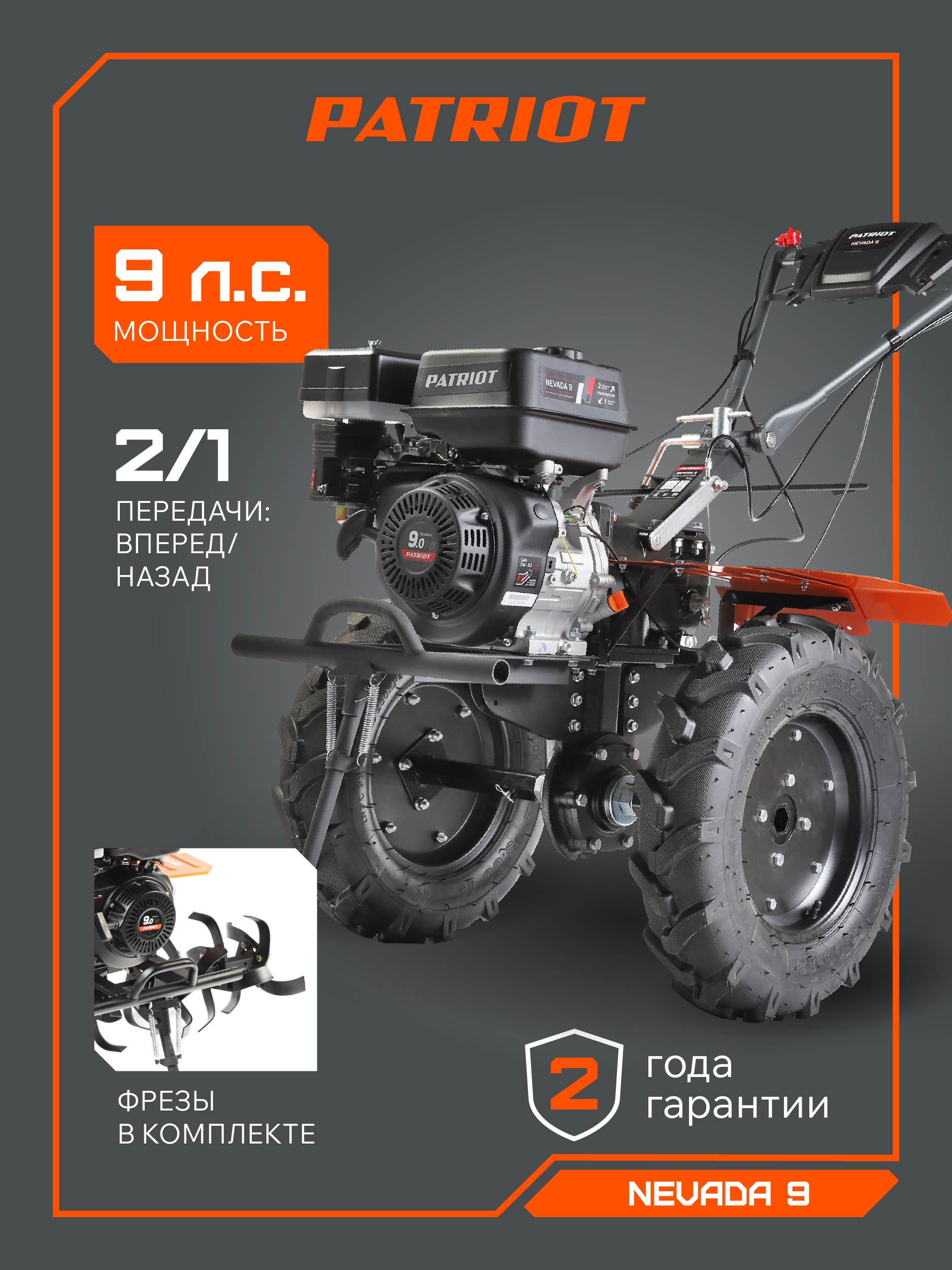 Мотоблок PATRIOT Nevada 9 предназначен для обработки больших участков до 3000 м² (30 соток) и справляется с тяжелыми задачами. Готов к работе сразу после покупки. Усиленные металлические фрезы обеспечивают качественную обработку. Две передачи вперед и одна назад позволяют маневрировать, а вал отбора мощности (ВОМ) расширяет функционал навесного оборудования. Мотоблок позволяет обрабатывать почву, простоявшую без дела 1-2 года.