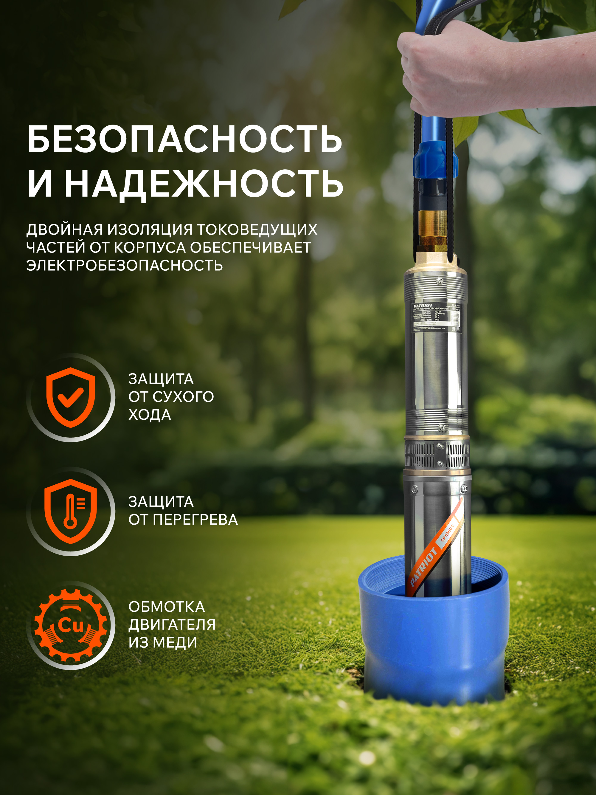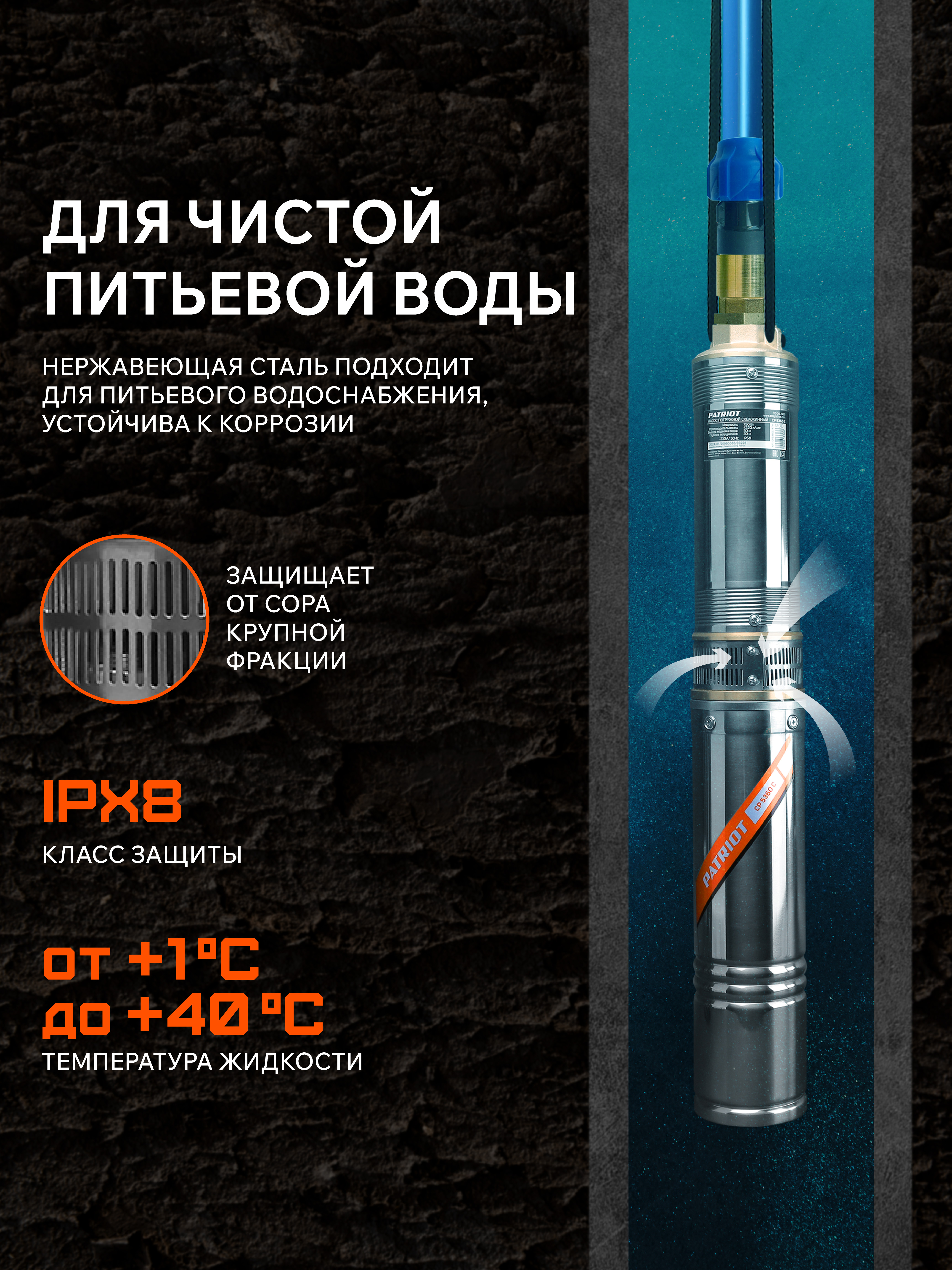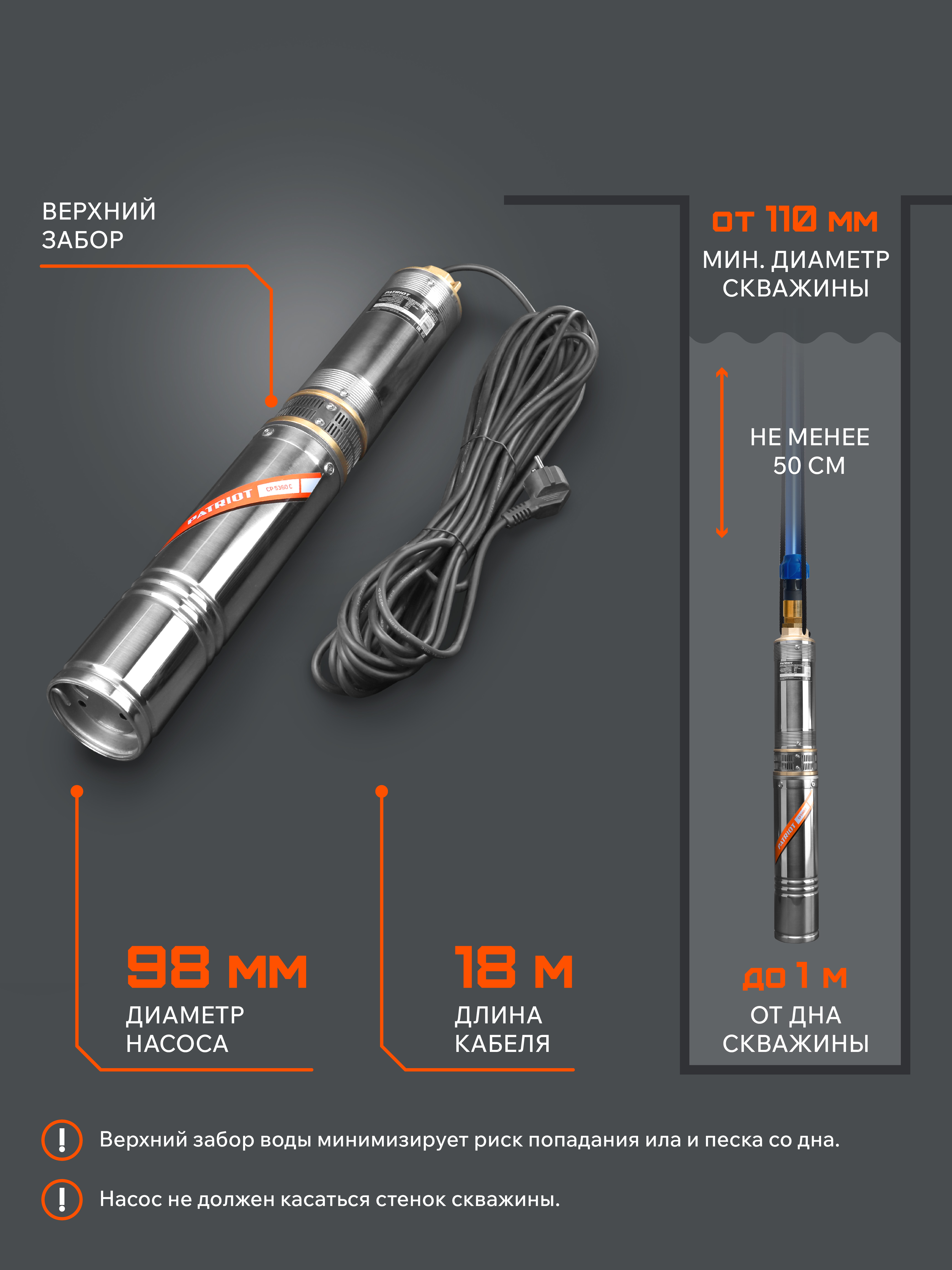 Погружной центробежный скважинный насос предназначен для подачи воды из скважин диаметром от 110 мм, колодцев, различных емкостей и естественных водоемов. Глубина погружения (от зеркала воды) до 30 метров.