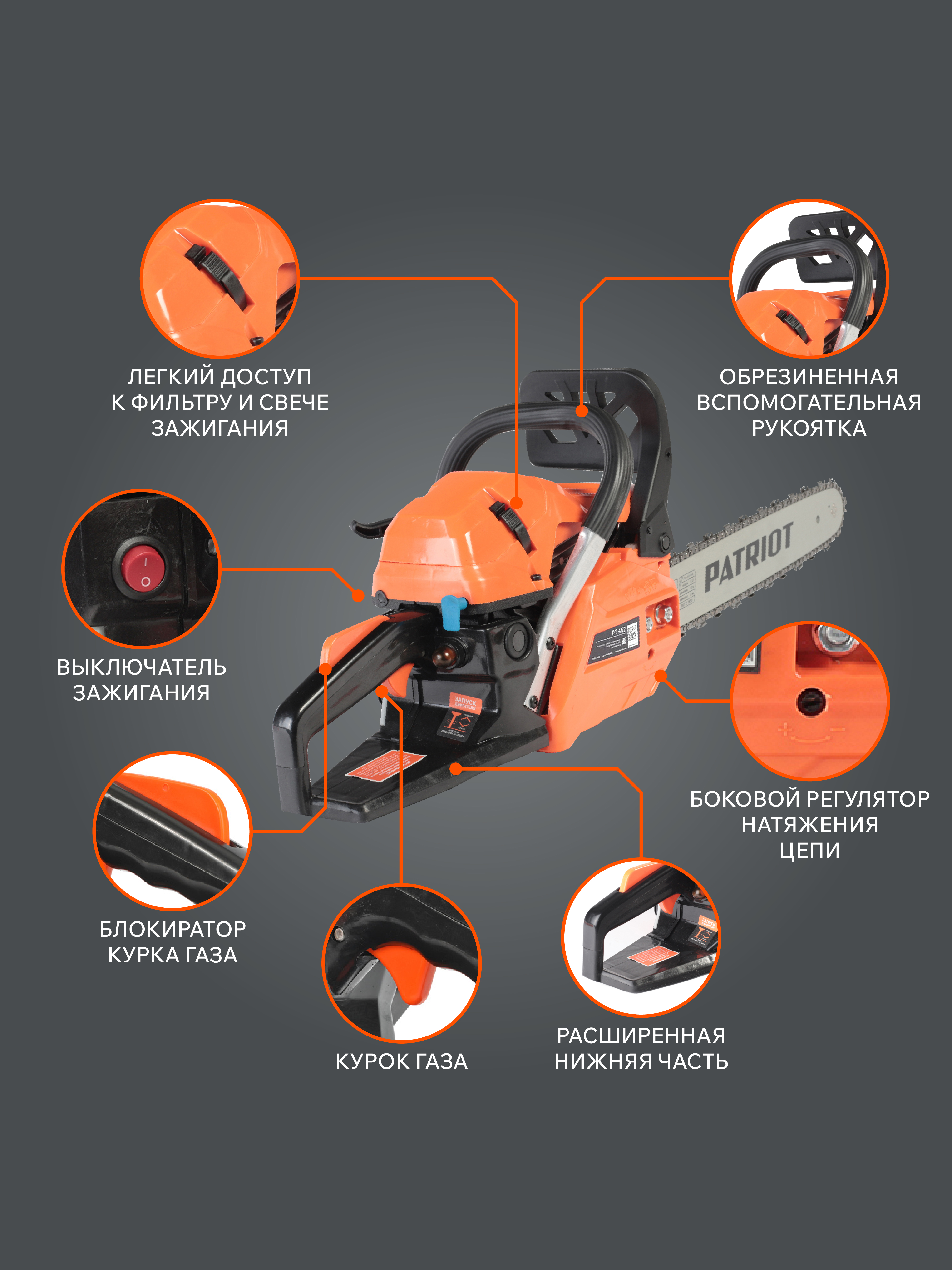 Мощный 2Т двигатель, передовая система антивибрации, сбалансированная конструкция и эргономичная рукоятка управления обеспечат удобство при эксплуатации и точный распил. Боковой натяжитель цепи позволит оператору контролировать натяжение цепи.