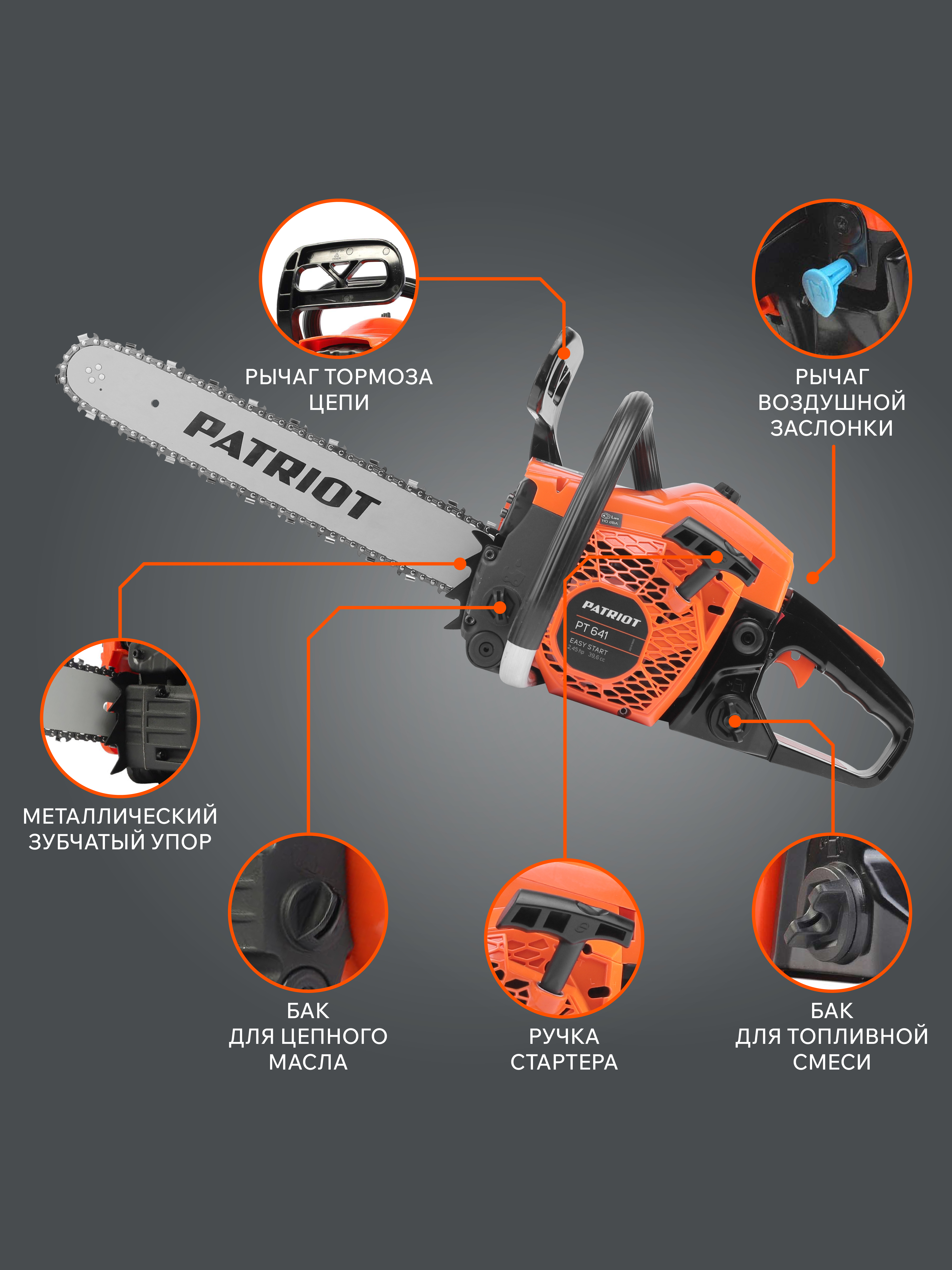 Бензопила предназначена для работ по валке деревьев, заготовке дров, в деревянном домостроении, строительстве и должна использоваться исключительно хорошо обученным персоналом. Система Easy Start обеспечивает легкий гарантированный запуск, крепления крышки шины снабжены не съемными гайками. Система зима-лето обеспечивает стабильную работу как в холодную, так и в жаркую погоду. Боковая система регулировки натяжения цепи и автоматическая регулируемая подача масла для смазки цепи обеспечивают продолжительное бесперебойное их использование. Корпус картера изготовлен из высокопрочного легкого магниевого сплава. Легкий автоматический тормоз цепи предупреждает возникновения несчастных случаев. Металлический упор создает дополнительные удобства в эксплуатации при распиловке массивных стволов деревьев и бревен.