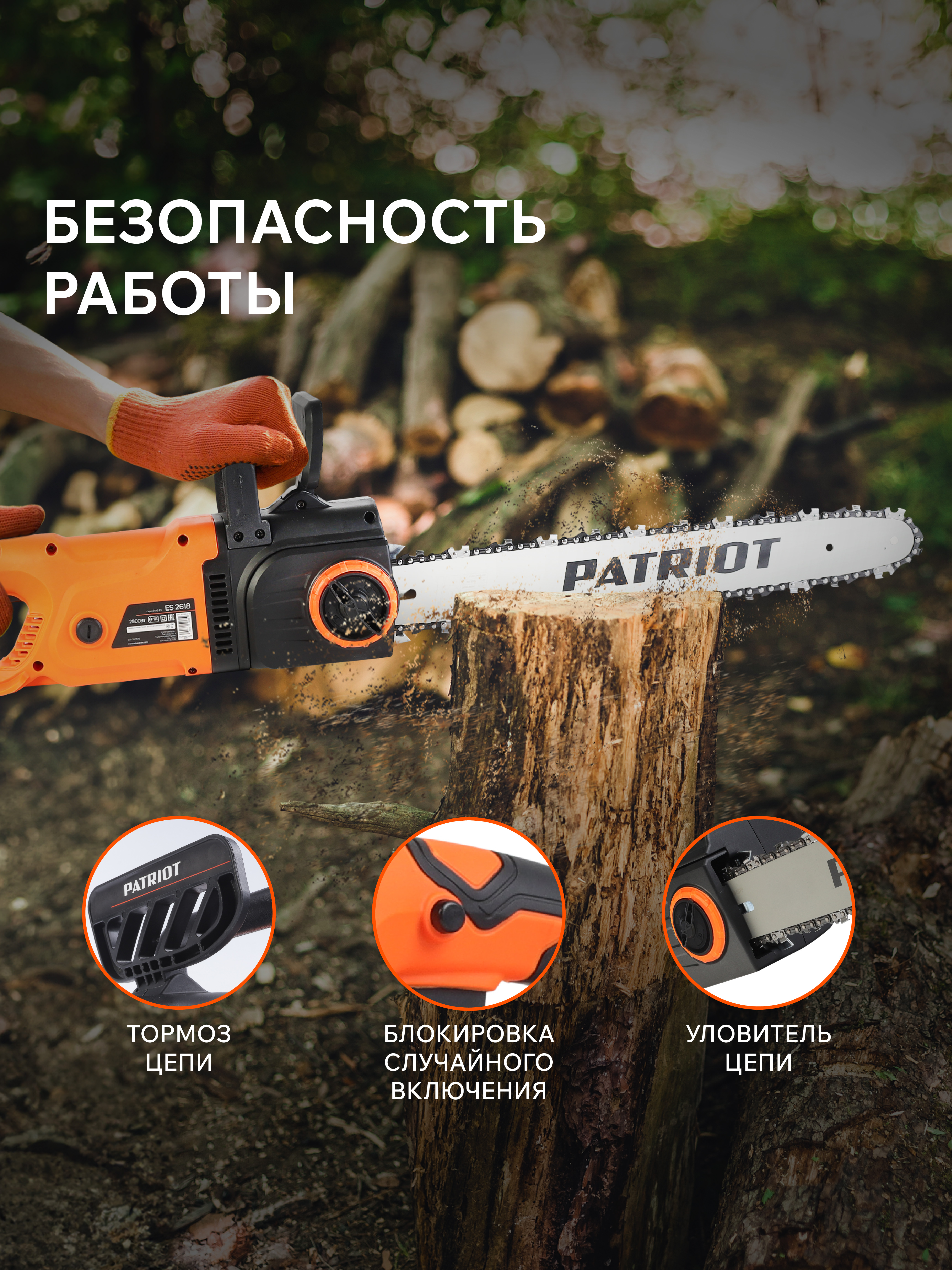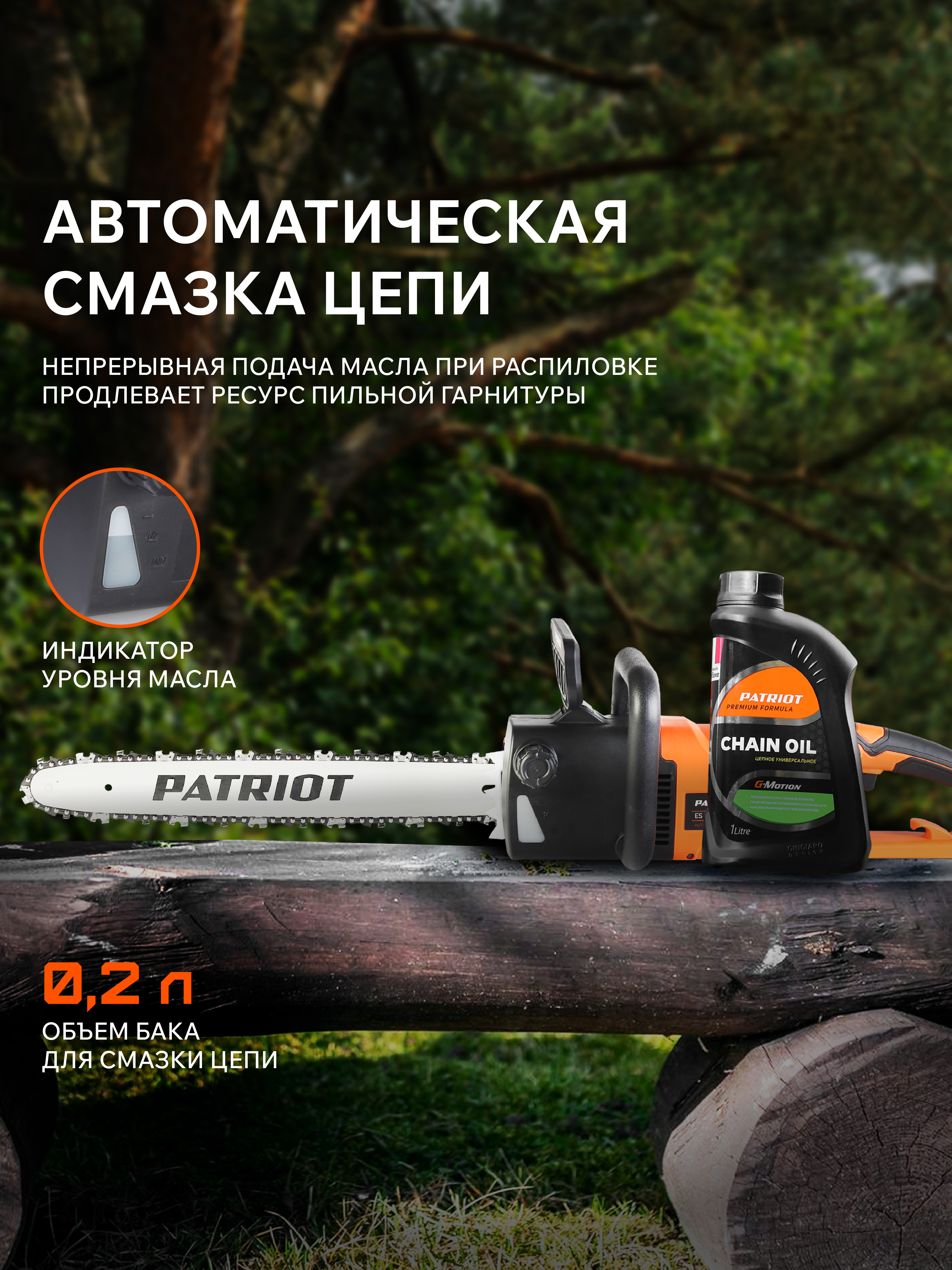 Используя вместе с электрической пилой биоразлагаемое цепное масло Patriot, вы не наносите вреда экологии.