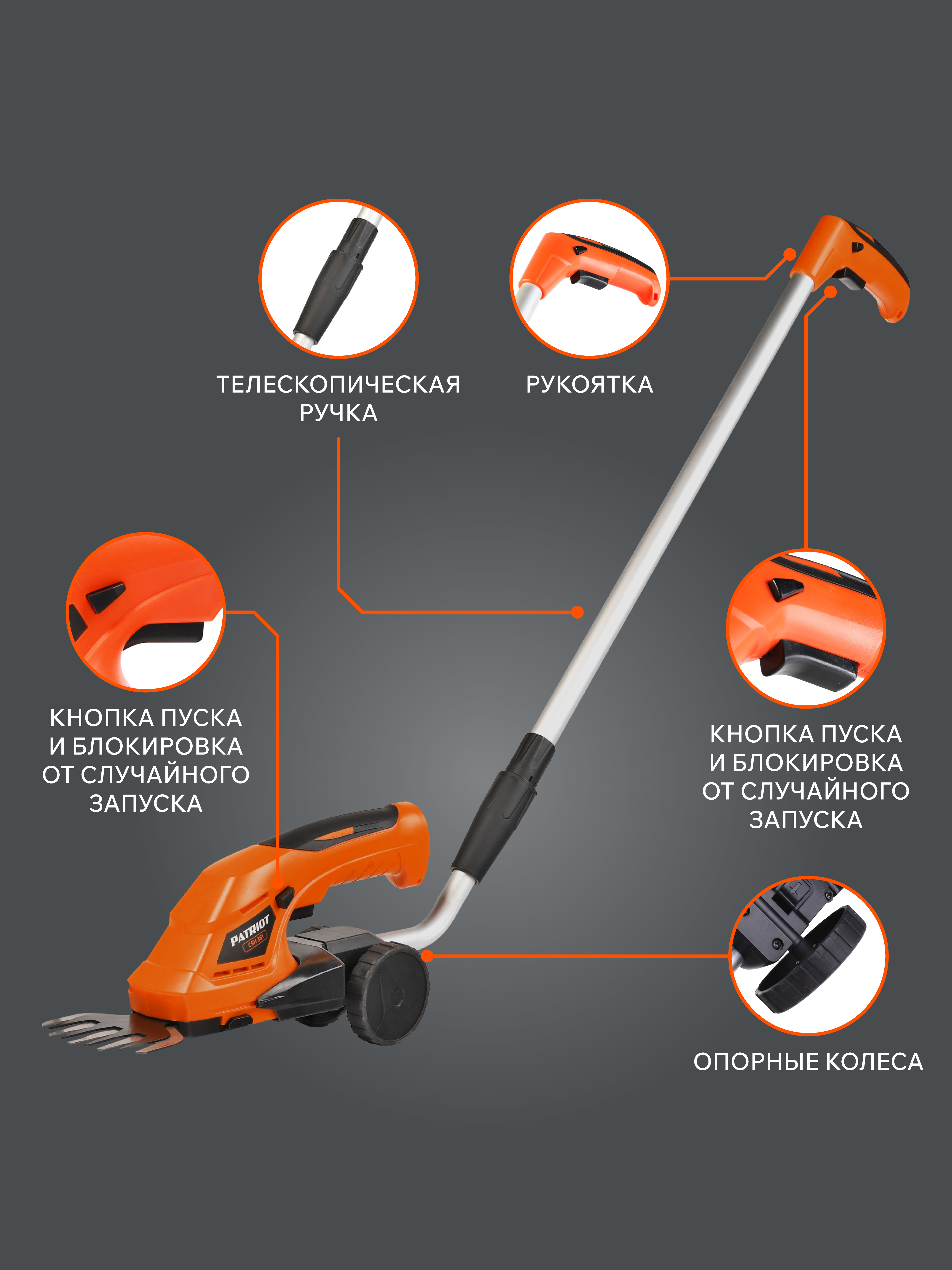 (Телескопическая штанга используется только с установленной насадкой "ножницы")