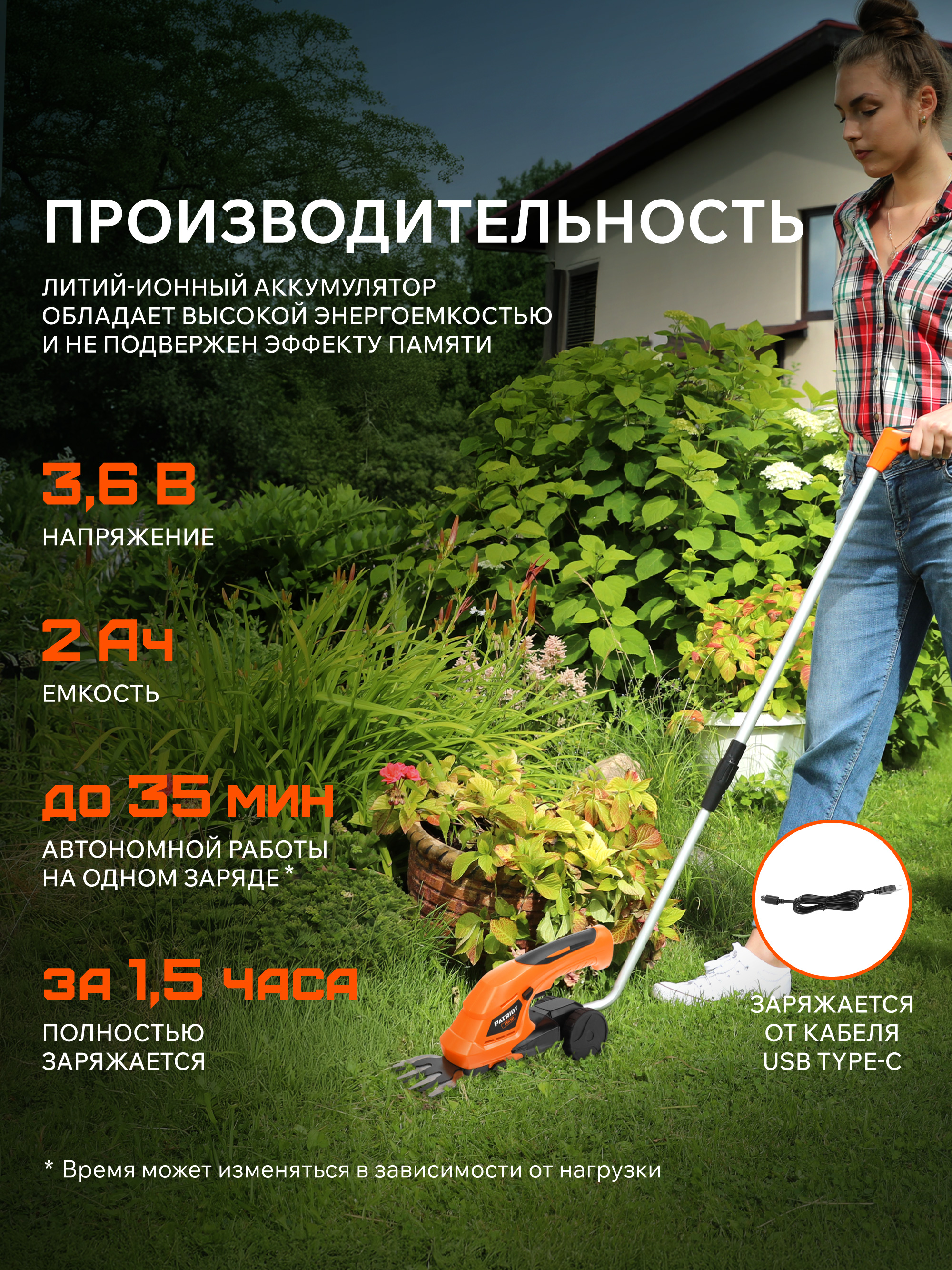 Легкие и тихие ножницы-кусторез аккумуляторные СSH 361 для подравнивания молодых побегов, стрижки кустарников и краев газона. Используются, как садовые ножницы с шириной среза 80 мм или в качестве кустореза с длиной ножа 120 мм. Острые лезвия справятся с побегами крыжовника, малины, хвойниками. Эргономичное расположение элементов управления и прорезиненная рукоятка гарантируют комфортную работу без утомления. На одном заряде аккумулятора работают до 35 минут. Заряжается аккумулятора от любого адаптера питания для смартфона, время зарядки до 90 минут (в комплекте кабель USB Type-C). Для еще более комфортной работы в комплект поставки включена телескопическая штанга на роликах.