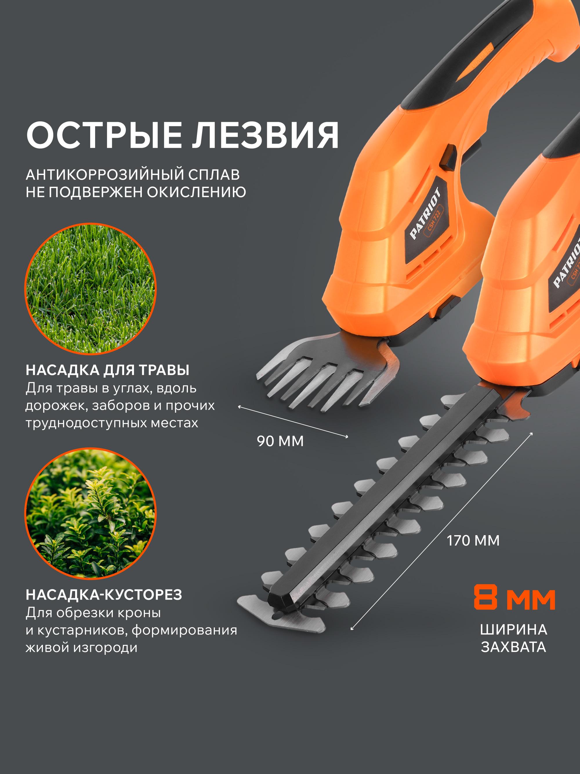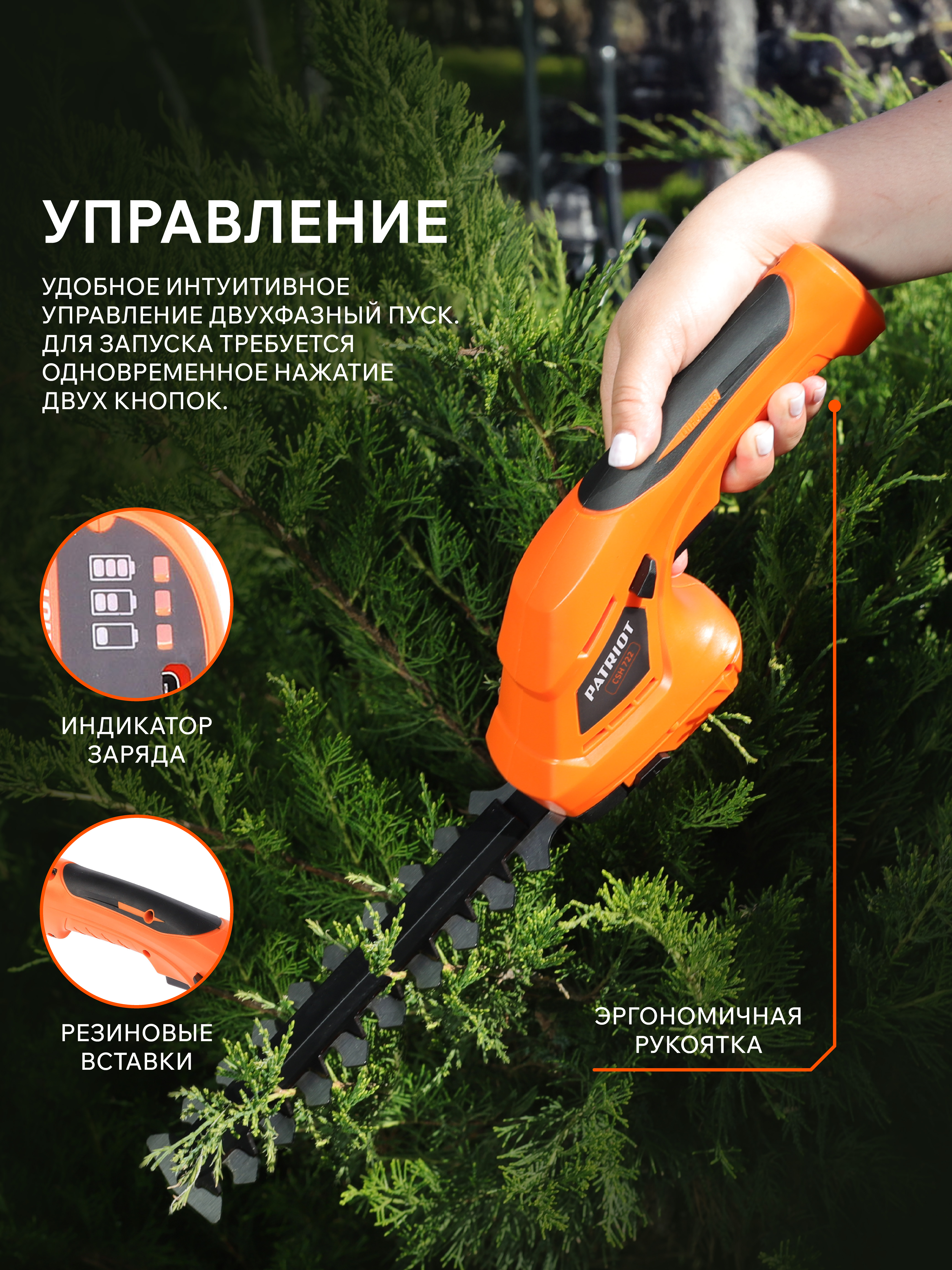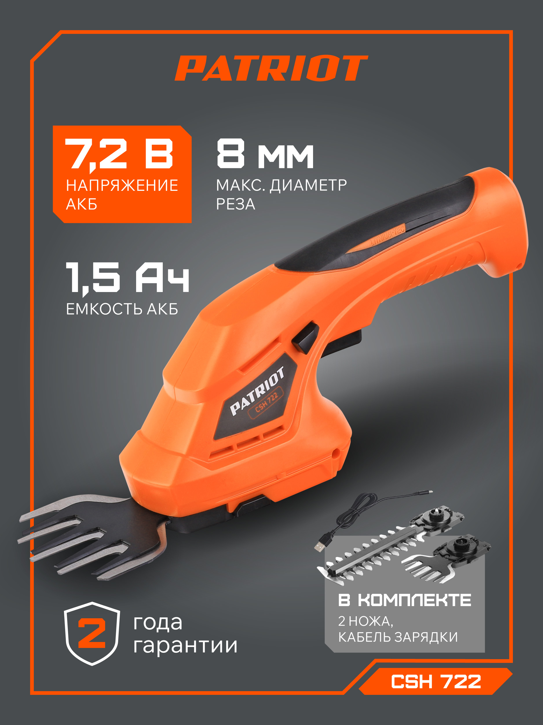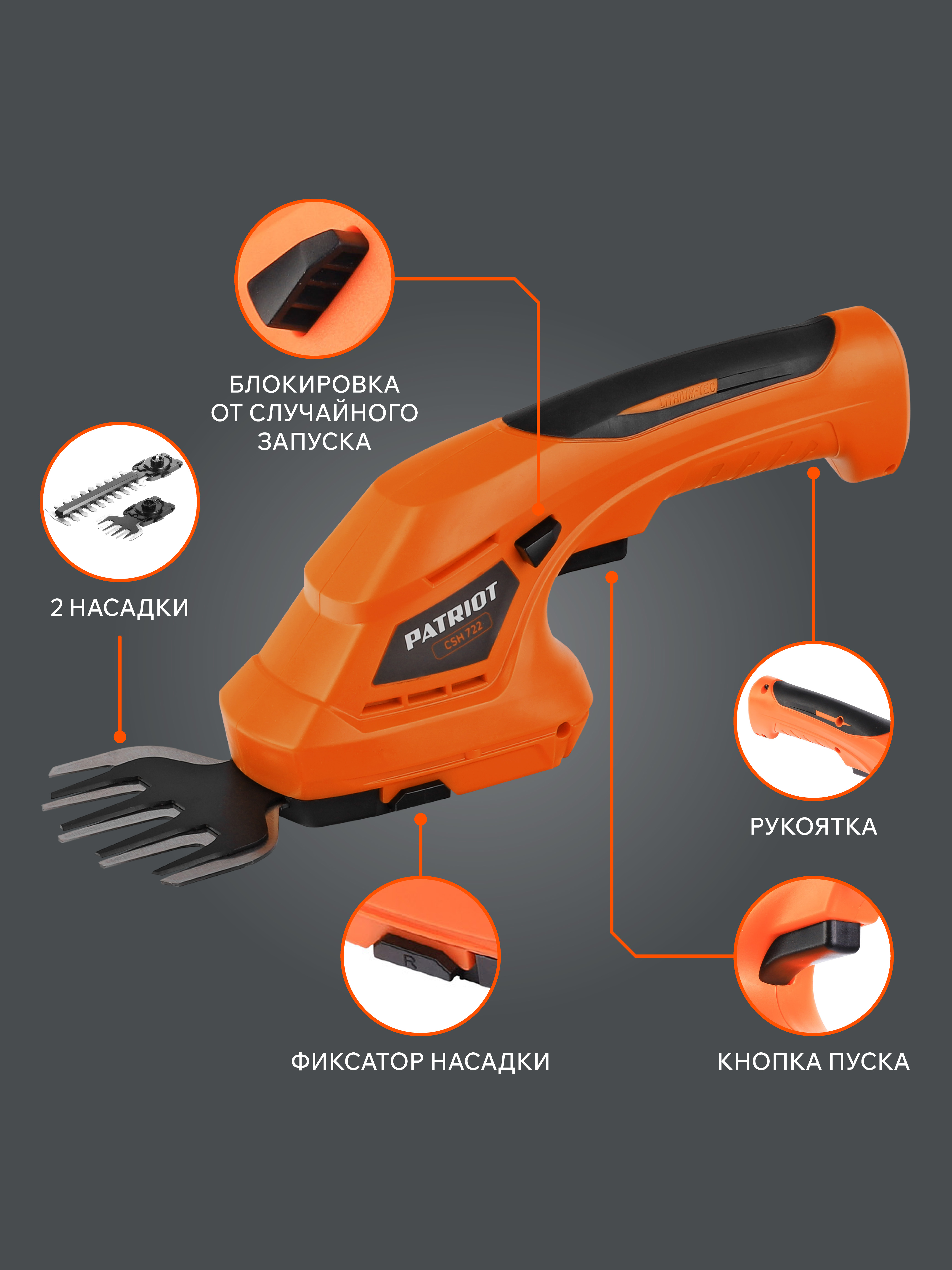 Ножницы-кусторез аккумуляторные СSH 722 – удобный инструмент для стрижки газона рядом с клумбами и дорожками, подрезания поросли на декоративных кустарниках. Удлиненное лезвие позволит без труда добраться к кустарникам с мощной и низкой кроной. Ножницы справятся с побегами крыжовника, малины, хвойниками. Прорезиненная рукоятка снижает уровень вибрации при работе. Ширина насадки для травы 90 мм, длина ножа для кустарников 170 мм. На одном заряде аккумулятора работают до 20 минут. Время полной зарядки аккумулятора до 40 минут.