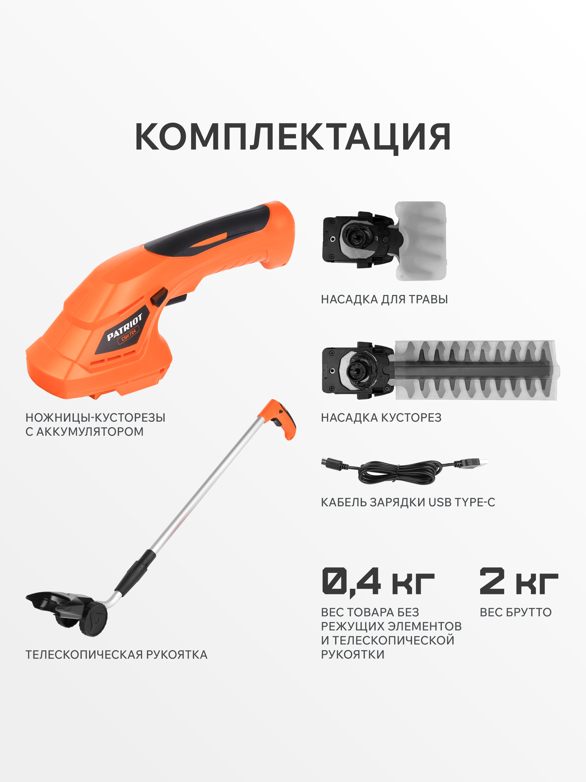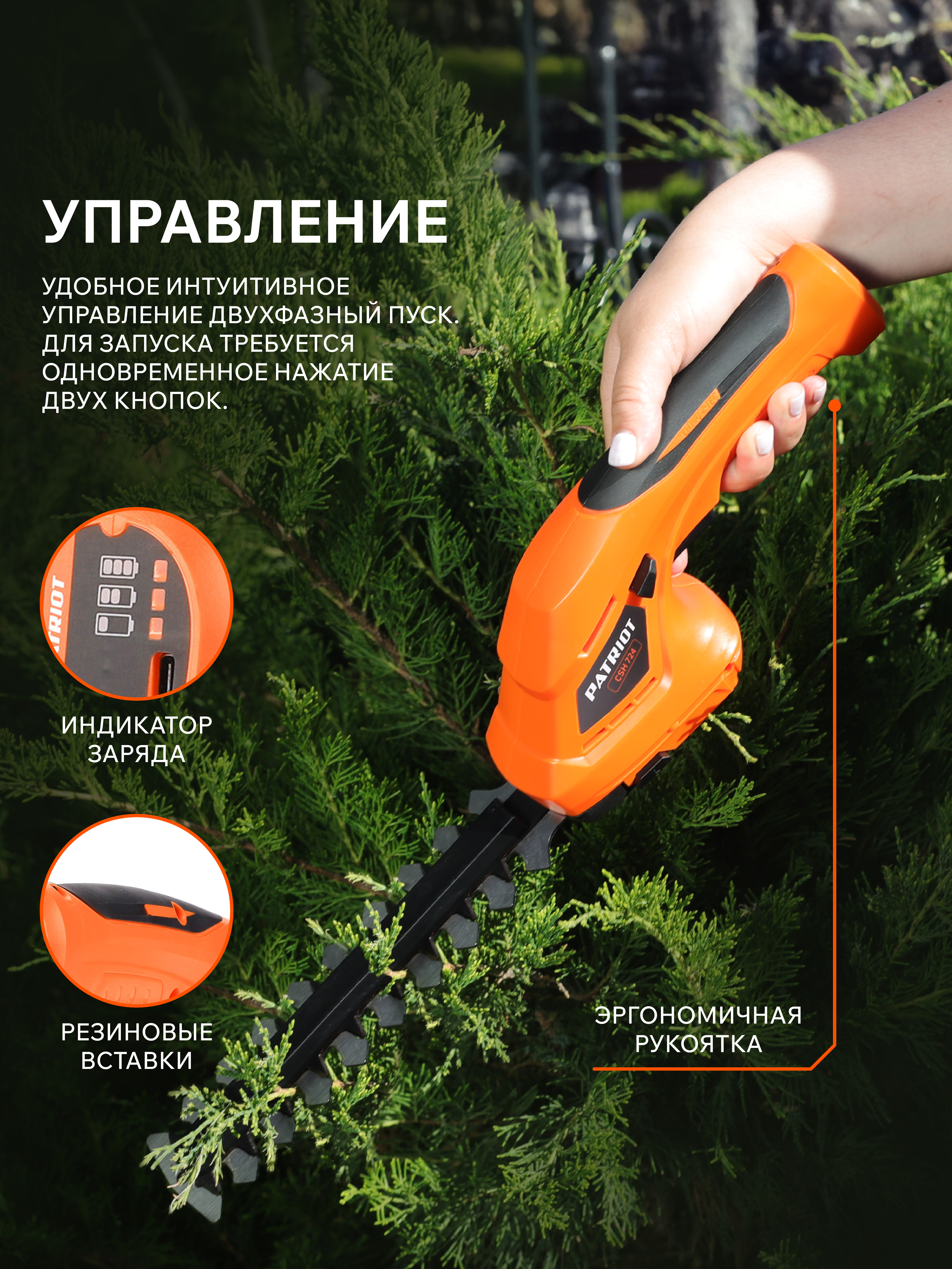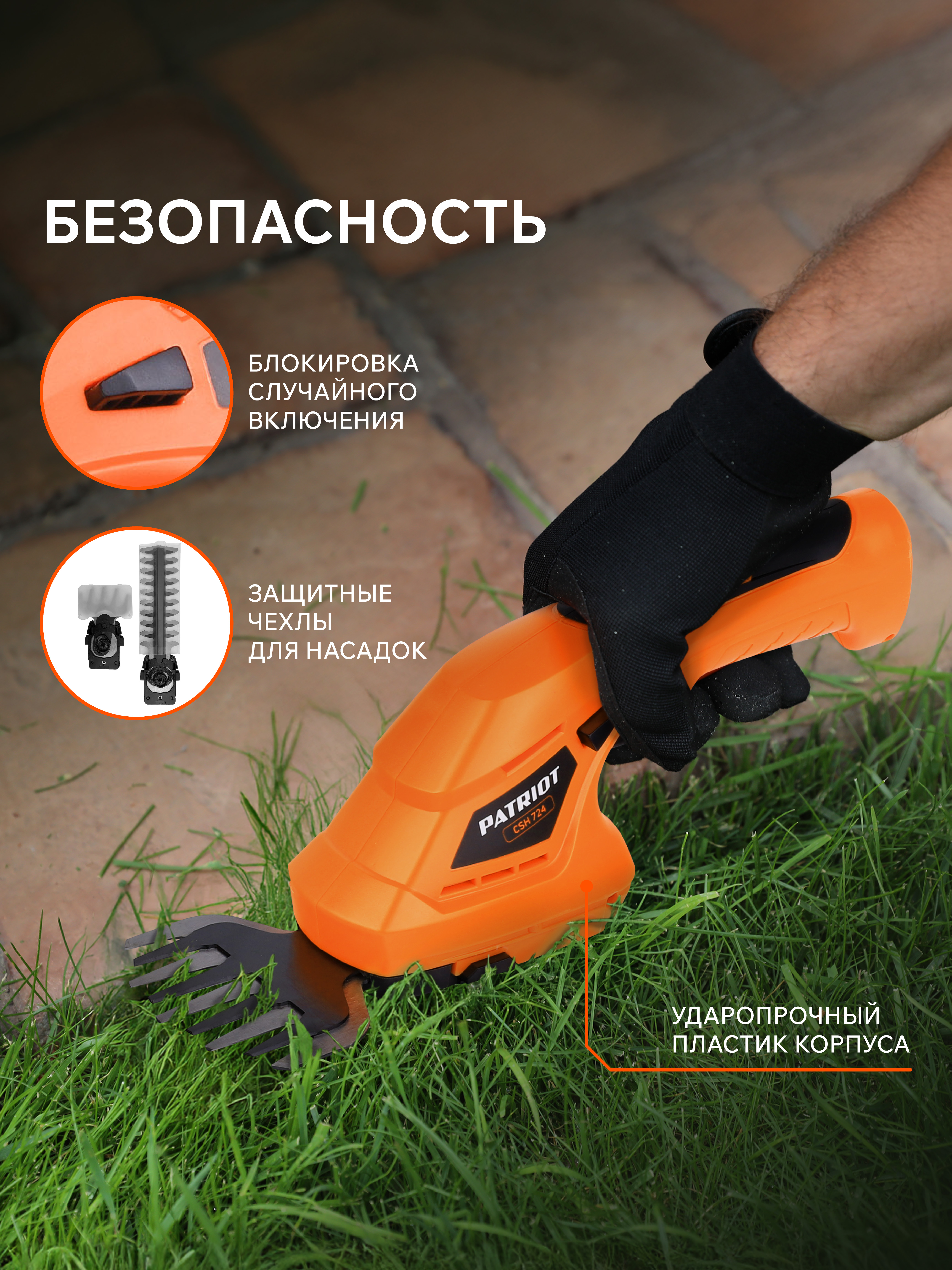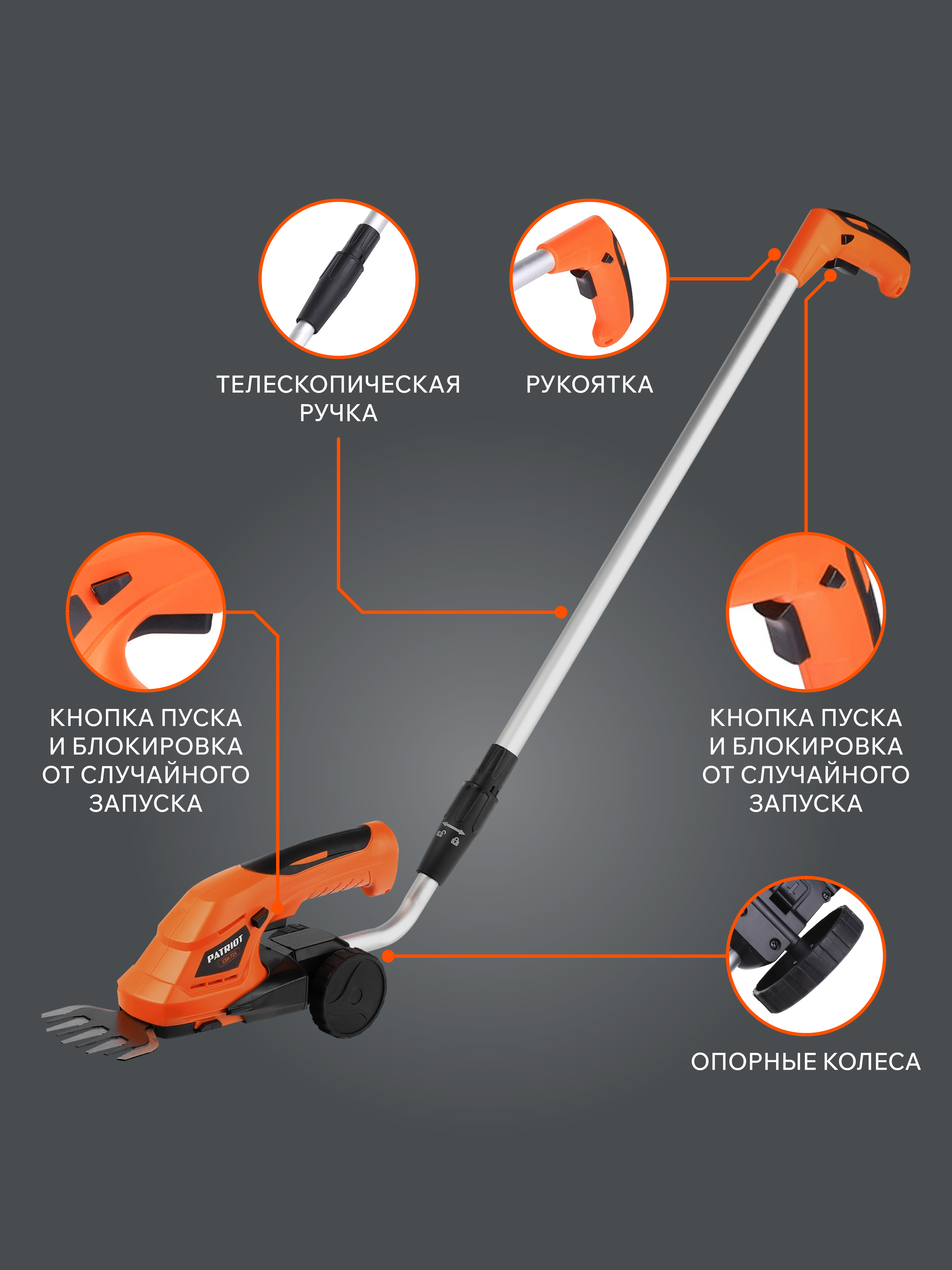 Ножницы-кусторез аккумуляторные СSH 724 – удобный инструмент для стрижки газона рядом с клумбами и дорожками, подрезания поросли на декоративных кустарниках. Удлиненное лезвие позволит без труда добраться к кустарникам с мощной и низкой кроной. Ножницы справятся с побегами крыжовника, малины, хвойниками. Прорезиненная рукоятка снижает уровень вибрации при работе. Ширина насадки для травы 90 мм, длина ножа для кустарников 170 мм. На одном заряде аккумулятора работают до 20 минут. Время полной зарядки аккумулятора до 40 минут. Для еще более комфортной работы в комплект поставки включена телескопическая штанга на роликах. (Телескопическая штанга используется только с установленной насадкой "ножницы")