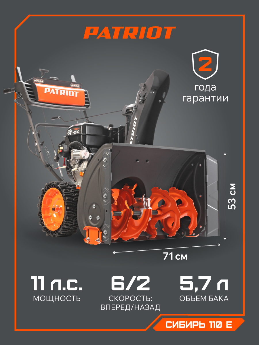 Мощный снегоуборщик PATRIOT Сибирь 110 Е подходит для уборки снега и расчистки снежных заносов. Высокий зубчатый шнек с агрессивным дизайном перемалывает любой вид снега, включая сырой и обледеневший. Система XTS расширяет возможности для уборки на 10%, увеличивая площадь и высоту захвата. Созданные для работы в зимних условиях колеса серии Winter Extreme с гусеничным протектором гарантируют высокую проходимость и маневренность. Профессиональный двигатель способен работать при температуре до -35 градусов, а функция электростарта позволяет запустить его по нажатию одной кнопки. Для работы в темное время модель оснащена светодиодными фарами и системой подсветки зоны работы двигателя. Управление вынесено на отдельную панель, оснащённую счётчиком моточасов\тахометром и дающую быстрый доступ ко всем его элементам.