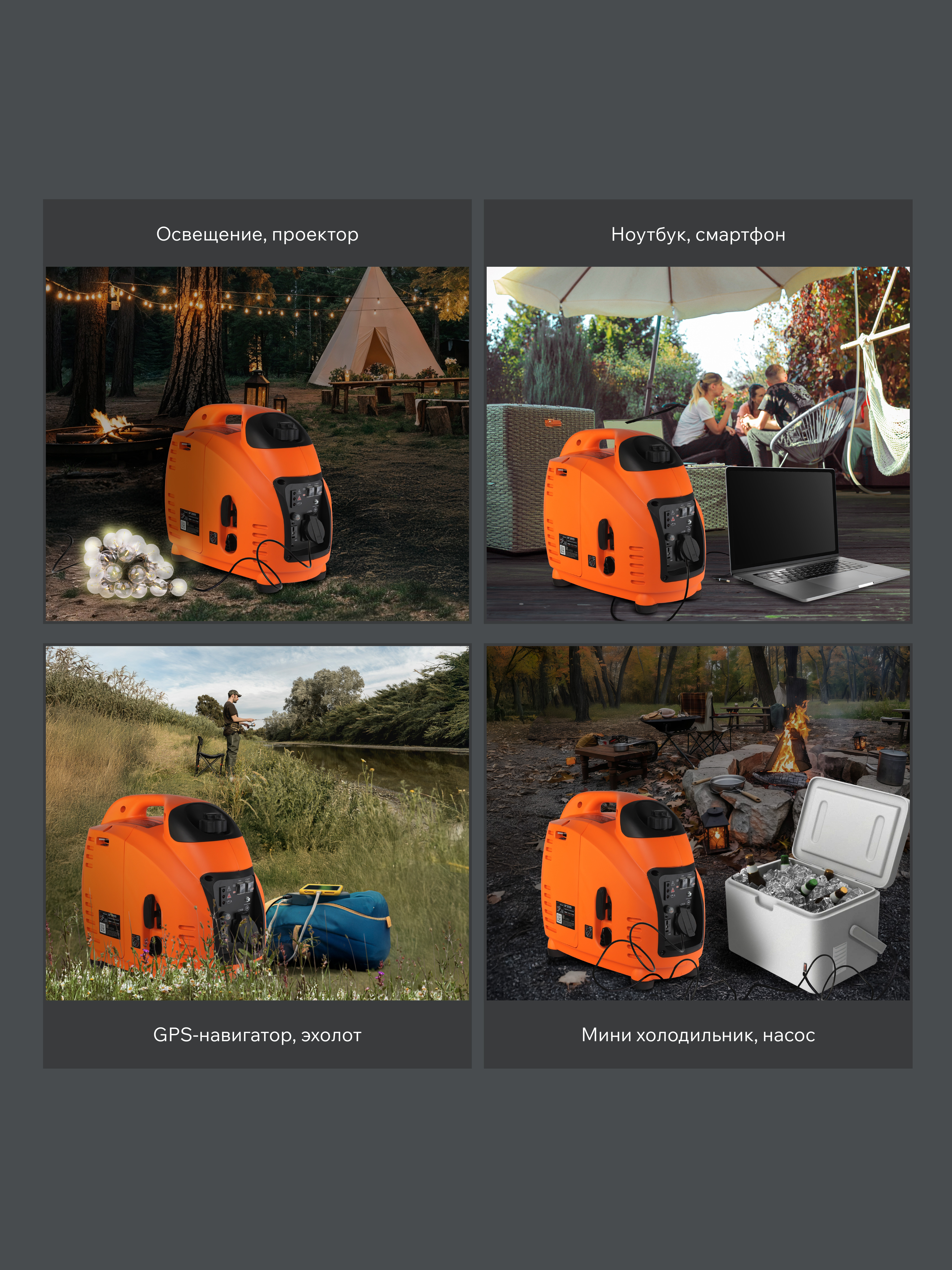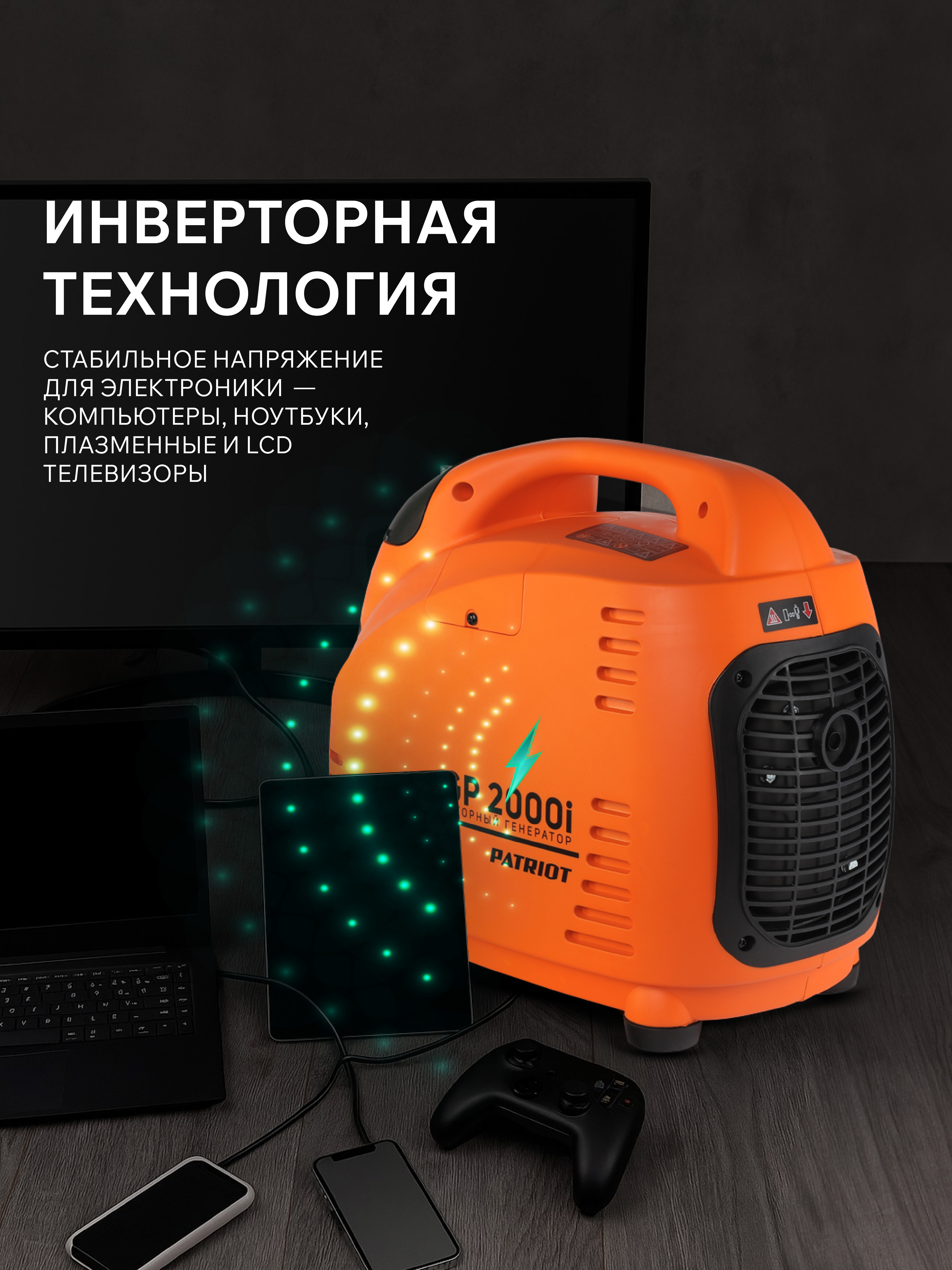 Переносной компактный инверторный генератор предназначен для питания маломощных электроприборов на загородном участке, в походе, на рыбалке. Высокое качество поставляемой энергии: чистая синусоида, стабильная частота и напряжение 230В ± 3% / 50Гц ± 0.5 позволяют подключать к генератору любые критичные к качеству напряжения устройства: компьютеры, ноутбуки, плазменные и LCD телевизоры. Применение современных материалов значительно уменьшило вес и размеры генератора. Благодаря двигателю, специально разработанному под инверторный генератор и особенной конструкции корпуса, удалось значительно понизить уровень шума. Режим ECO экономит топливо и увеличивает ресурс двигателя. Выход 12 вольт позволяет подзарядить автомобильный аккумулятор в экстренном случае.