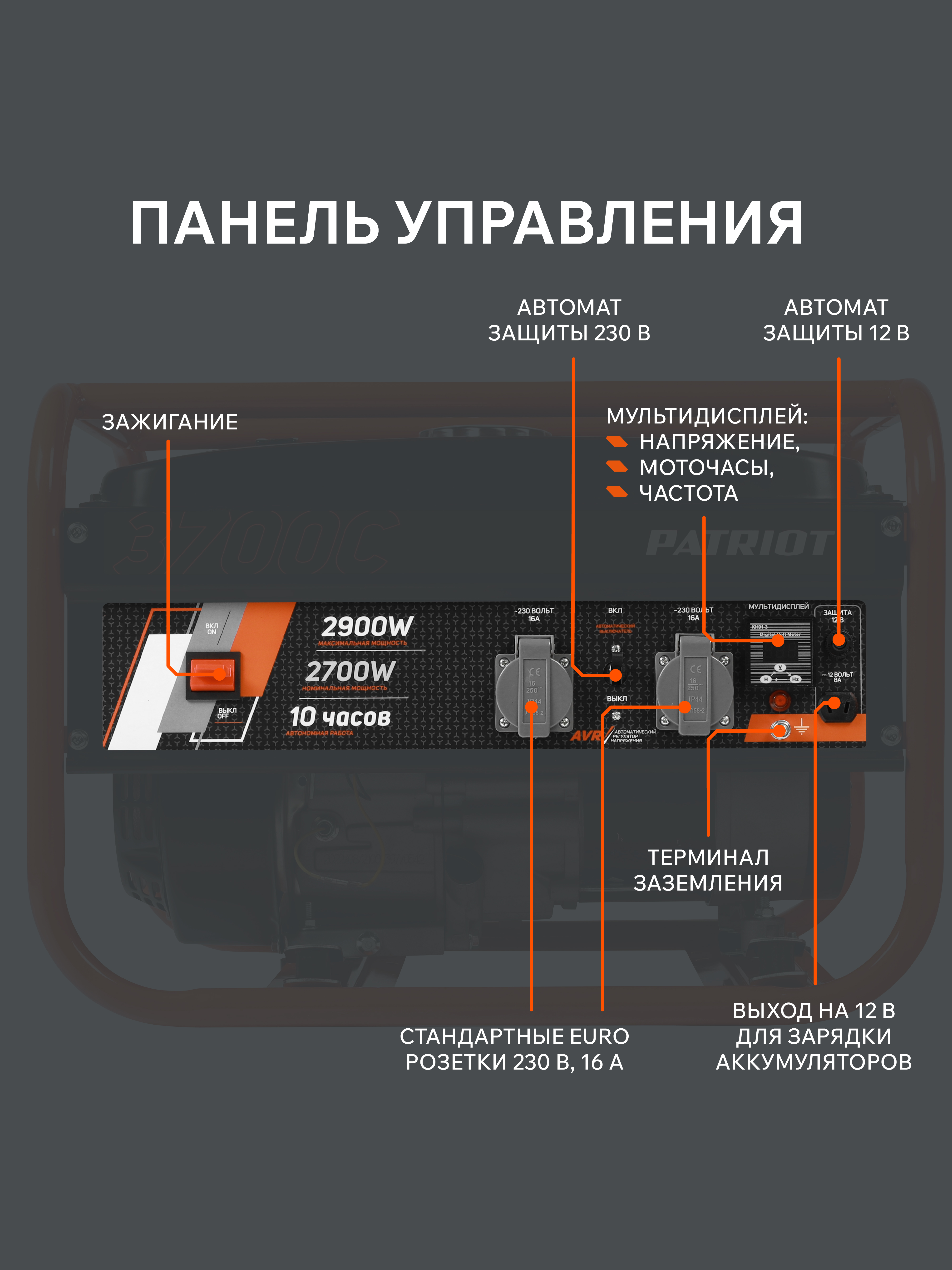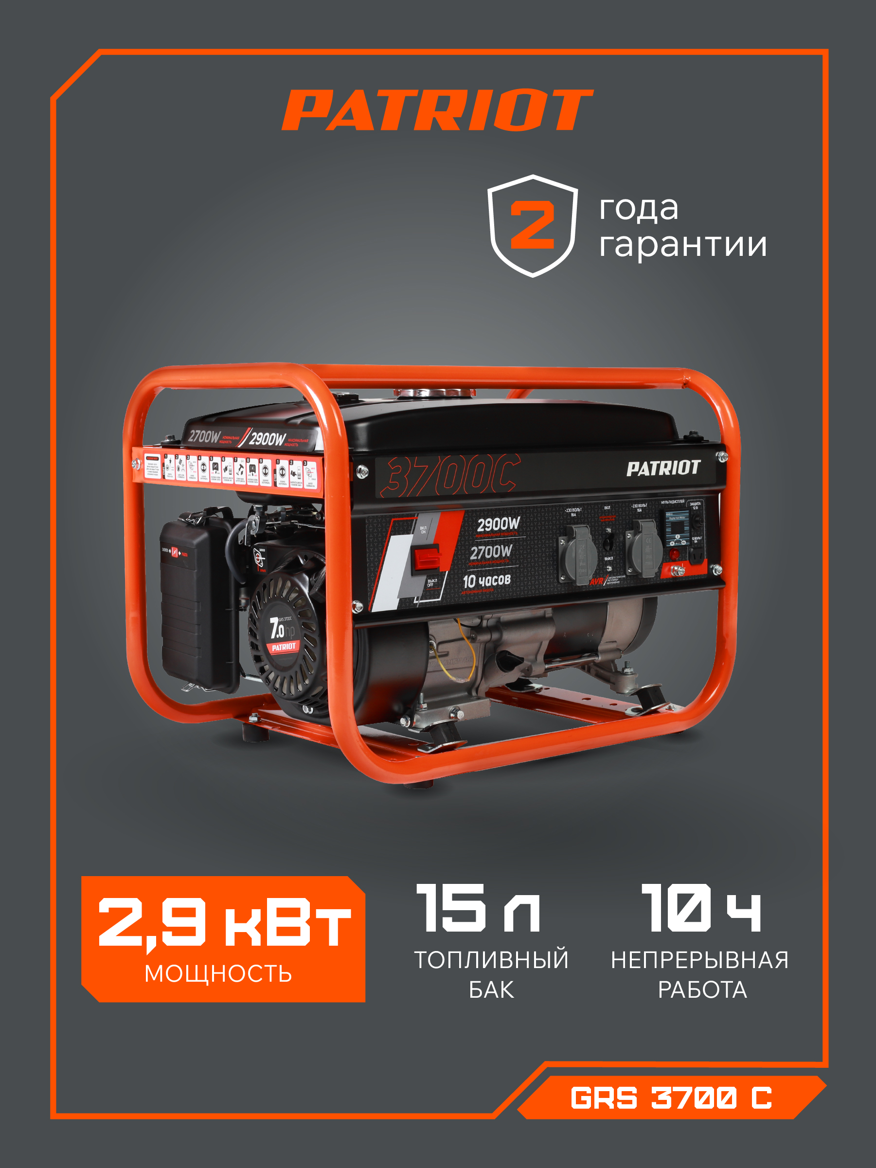 Генератор бензиновый PATRIOT GRS 3700 C применяется в качестве резервного источника питания вдали от центральной сети или в случае аварийной ситуации. Подойдет для питания маломощных приборов, таких как холодильник, чайник или зарядка мобильных телефонов. Можно установить комплект транспортировки.